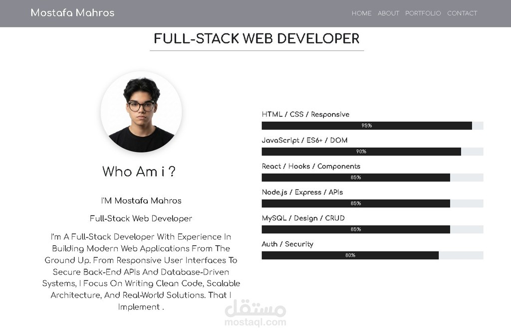 مطوّر Full Stack متخصص في بناء مواقع وتطبيقات ويب متكاملة تجمع بين التصميم العصري والأداء العالي. أمتلك خبرة في تطوير الواجهات الأمامية والخلفية مع التركيز على تقديم تجربة مستخدم سلسة واحترافية.