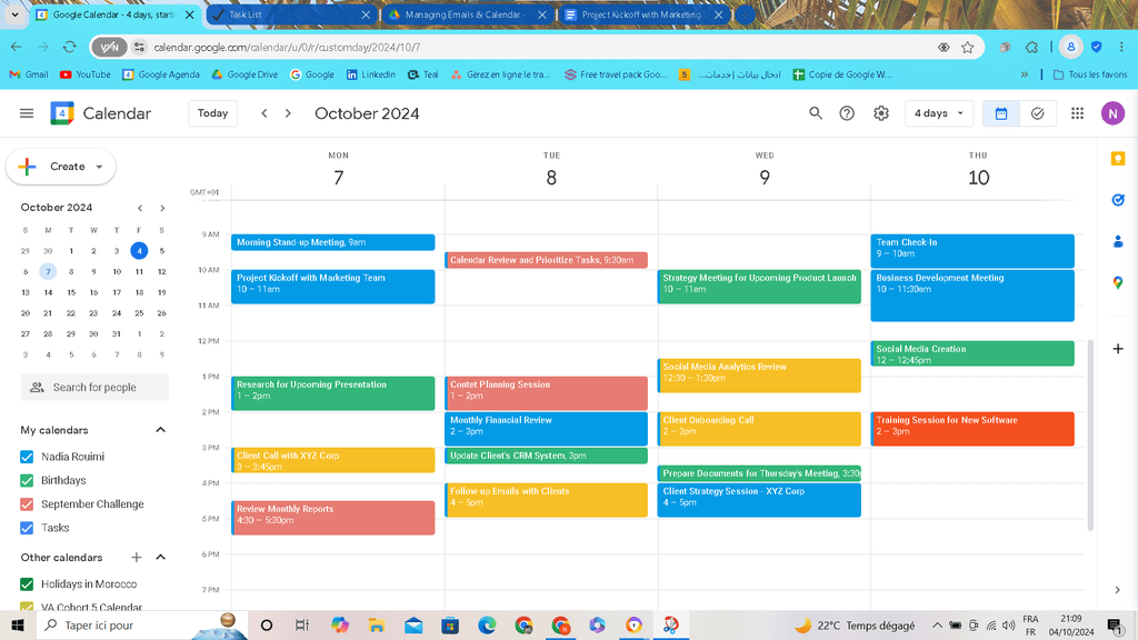 أنا نادية رويـمي، مساعدة افتراضية أقدم خدمات في إدارة الحسابات، التنظيم الإداري، ودعم العملاء. أعمل بدقة وكفاءة باللغات العربية، الفرنسية والإنجليزية