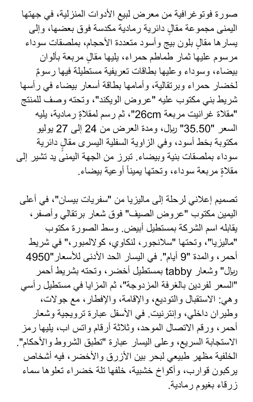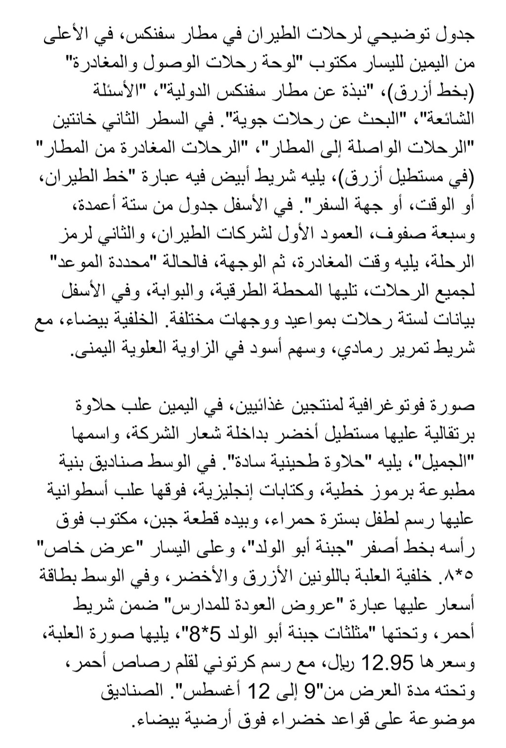 كتابة شرح مفصل ودقيق لعناصر الصور المرئية والنصية بهدف تدريب أدوات الذكاء الاصطناعي على تقديم محتوى عربي خالٍ من الأخطاء اللغوية، ومساعدته في تحسين نتائجه النصية باللغة العربية الفصحى، لتحسين جودة مخرجاته بما يتوافق مع طلب العملاء.