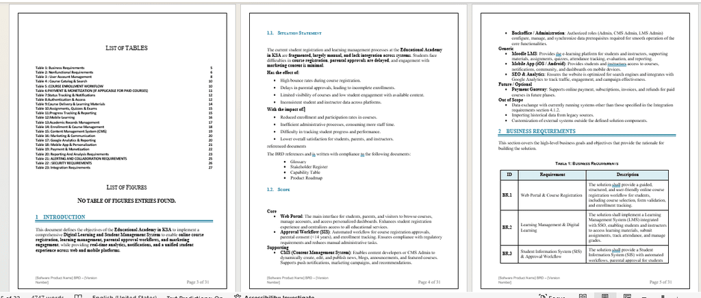أمتلك خبرة في تحليل المتطلبات، إعداد وثائق ال BRD و SRS، وتصميم العمليات التجارية (Business Process Design).