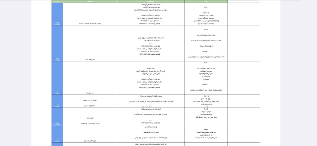 إعداد خطط محتوى شهرية مبنية على أهداف واضحة ومؤشرات أداء (KPIs).