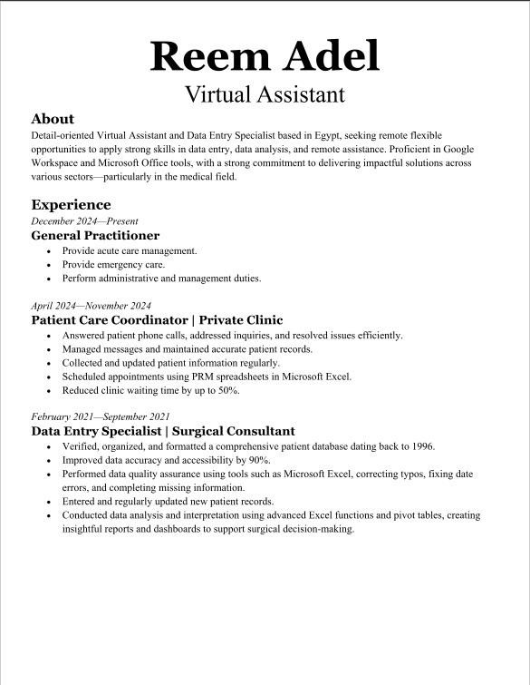 أعمل كمُدخلة بيانات، و مُساعدة عن بُعد، وطبيبة أيضا!