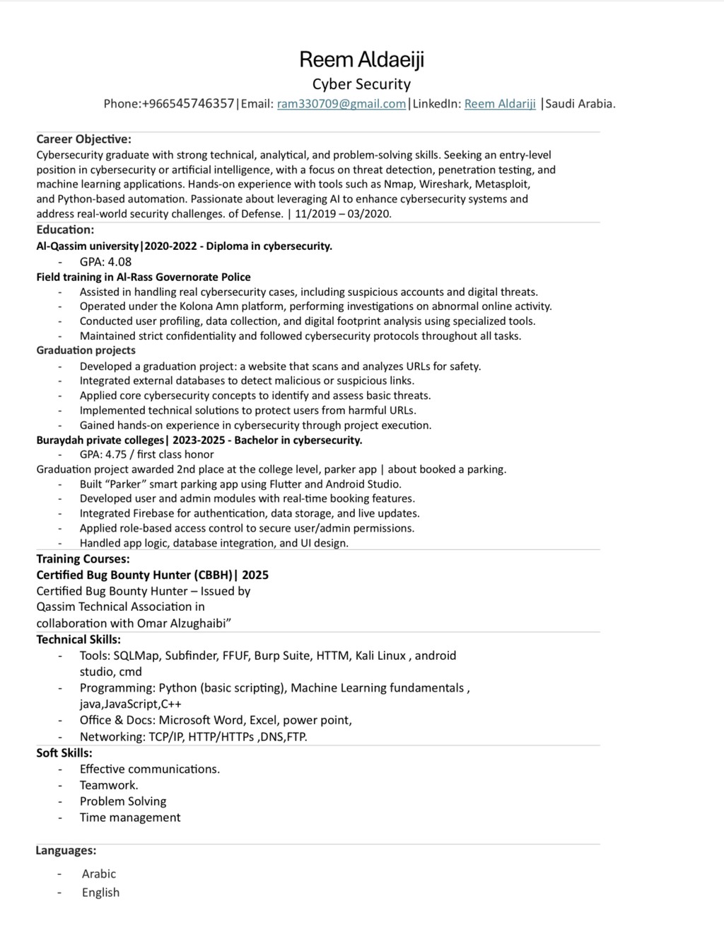 posi5on in cybersecurity or ar5ficial intelligence, with a focus on threat detec5on, penetra5on tes5ng, and
