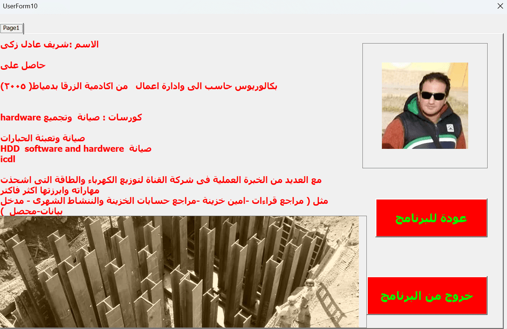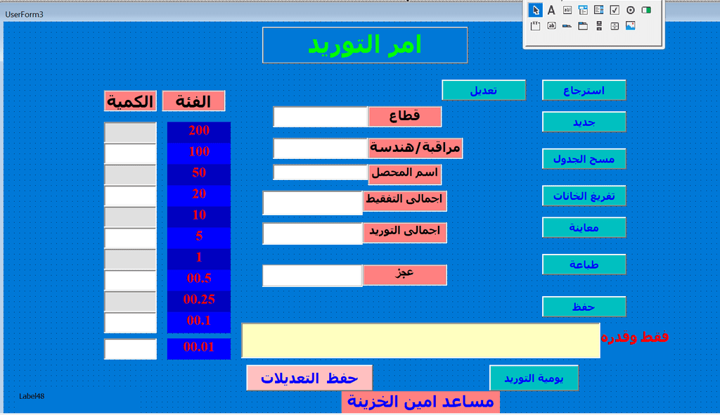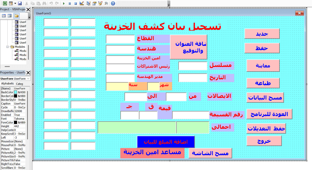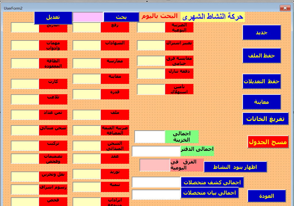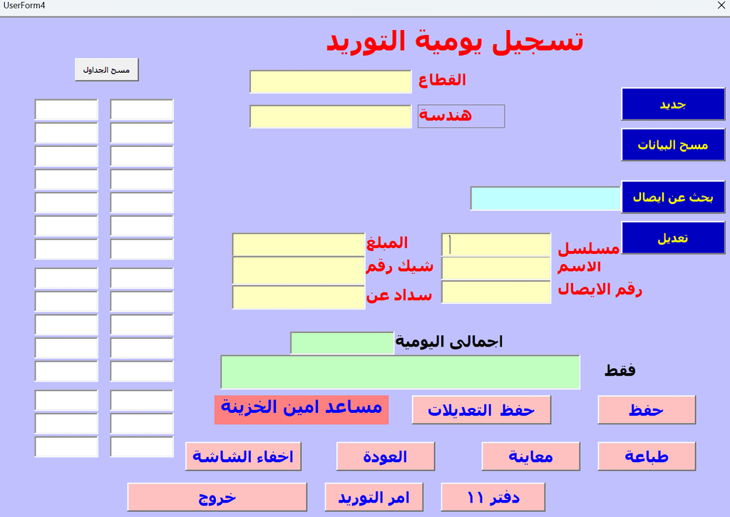يتم العمل على برنامج الاكسيل والفيجوال بيسك مع القدرة على استخراج بيانات من قواعد البيانات بصيغات اخرى مختلفة مثل CSV , ACCDB.SQL.DB