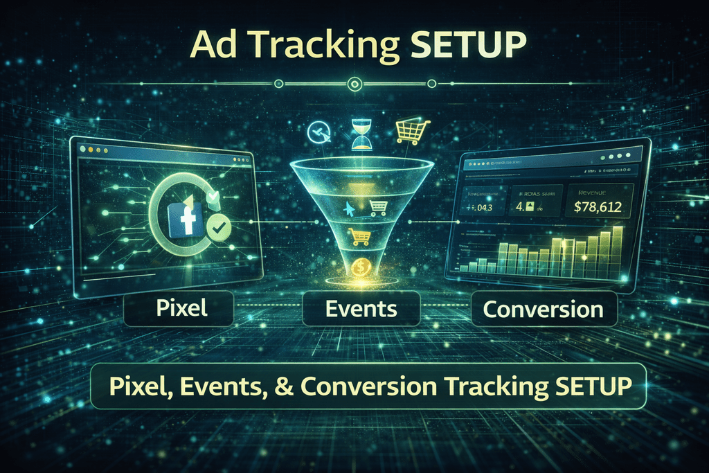 إعداد أنظمة التتبع وتحليل البيانات مثل Pixels وEvents، لضمان قياس كل خطوة داخل الحملة التسويقية، وربط النتائج الفعلية بالإعلانات بشكل دقيق.