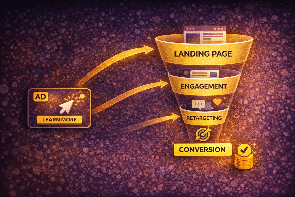 تحليل رحلة العميل من أول مشاهدة الإعلان وحتى التحويل، لمعرفة أماكن التسريب داخل المسار التسويقي، وتحسين كل مرحلة لزيادة معدلات التحويل وتقليل الهدر الإعلاني.