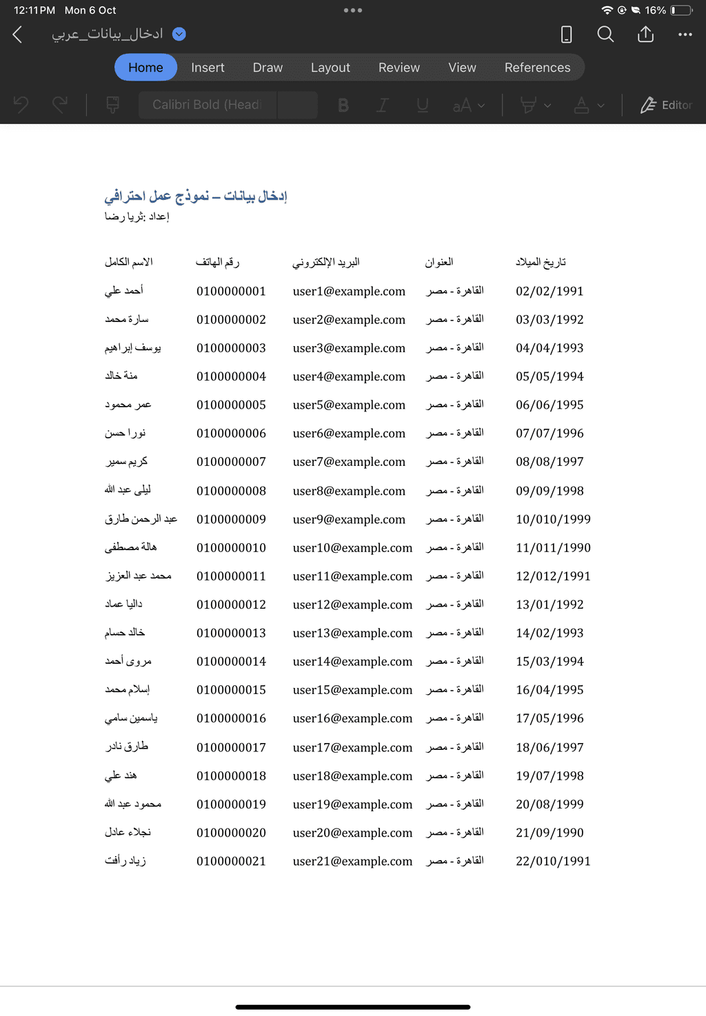 قمت بإدخال وتنسيق البيانات على جداول Excel، وتنظيم الملفات الإلكترونية، والتأكد من دقة المعلومات وسلامتها قبل رفعها للنظام