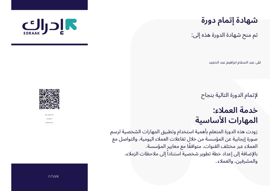 دورة خدمة العملاء من خلال منصة ادراك للمدرب أشرف الحمورى (مستشار إداري ومدرّب)