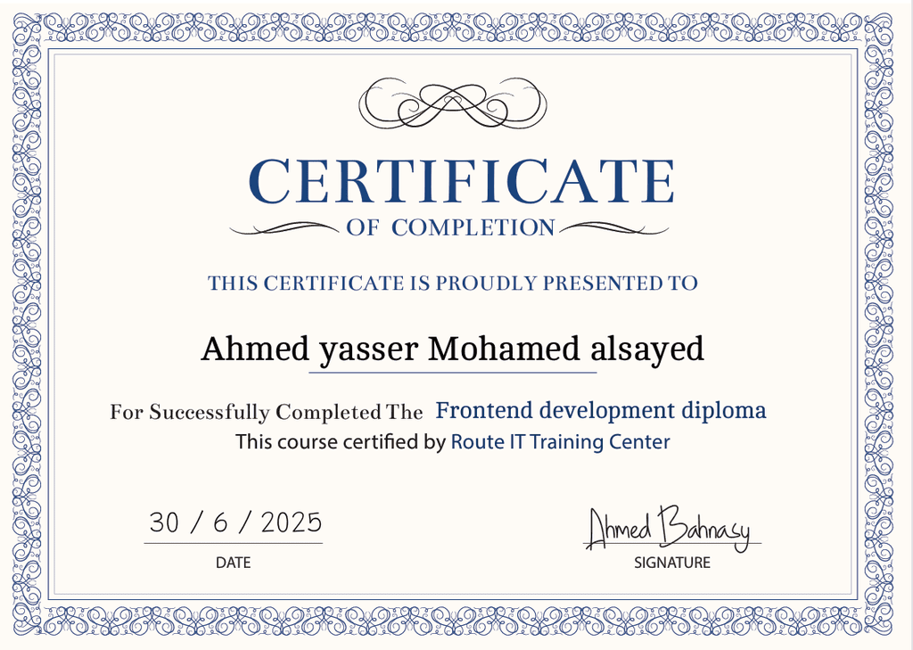 Route (Front-End Development Training): تدريب متخصص في تطوير الواجهات الأمامية وبناء مواقع وتطبيقات باستخدام تقنيات حديثة.
