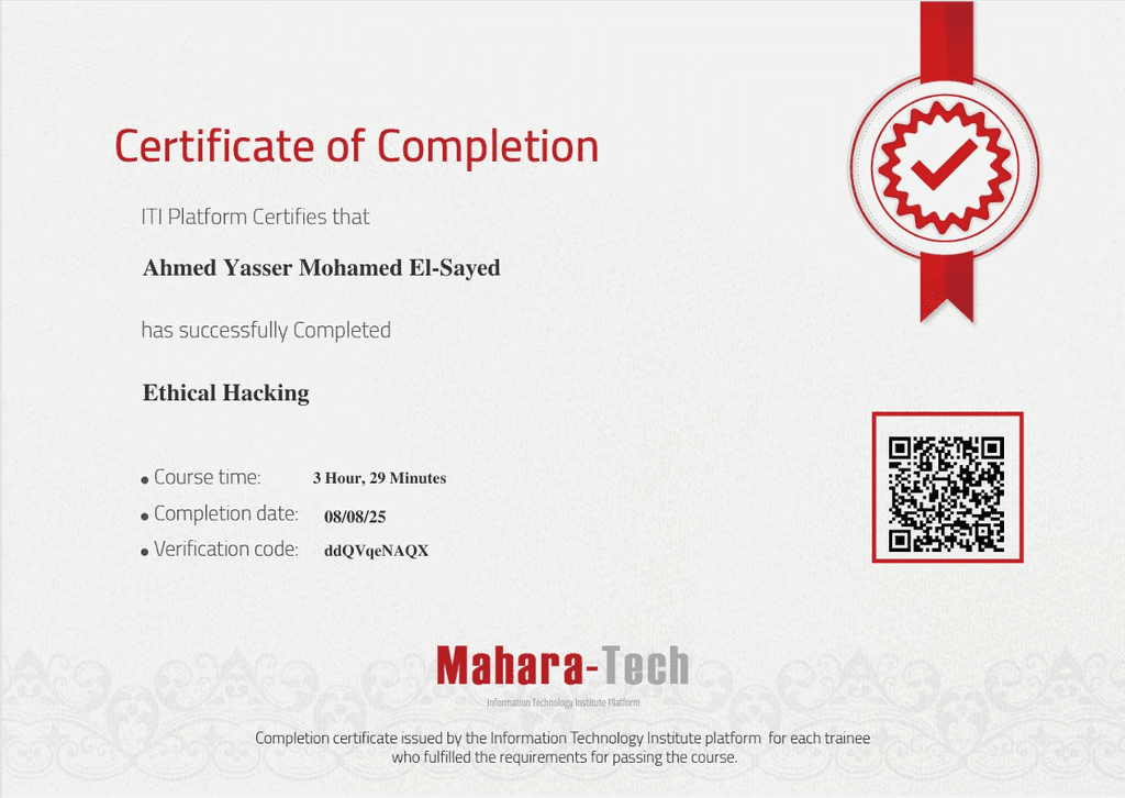 كما أمتلك خلفية قوية في HTML, CSS, Bootstrap, JavaScript، وأعمل على تطوير مهاراتي في الأمن السيبراني و الشبكات، حيث لدي معرفة بأساسيات Networking, Network Security, Ethical Hacking, Cybersecurity واستخدام أدوات مثل Burp Suite, Nmap, Wireshark.