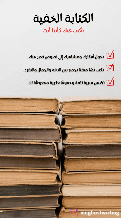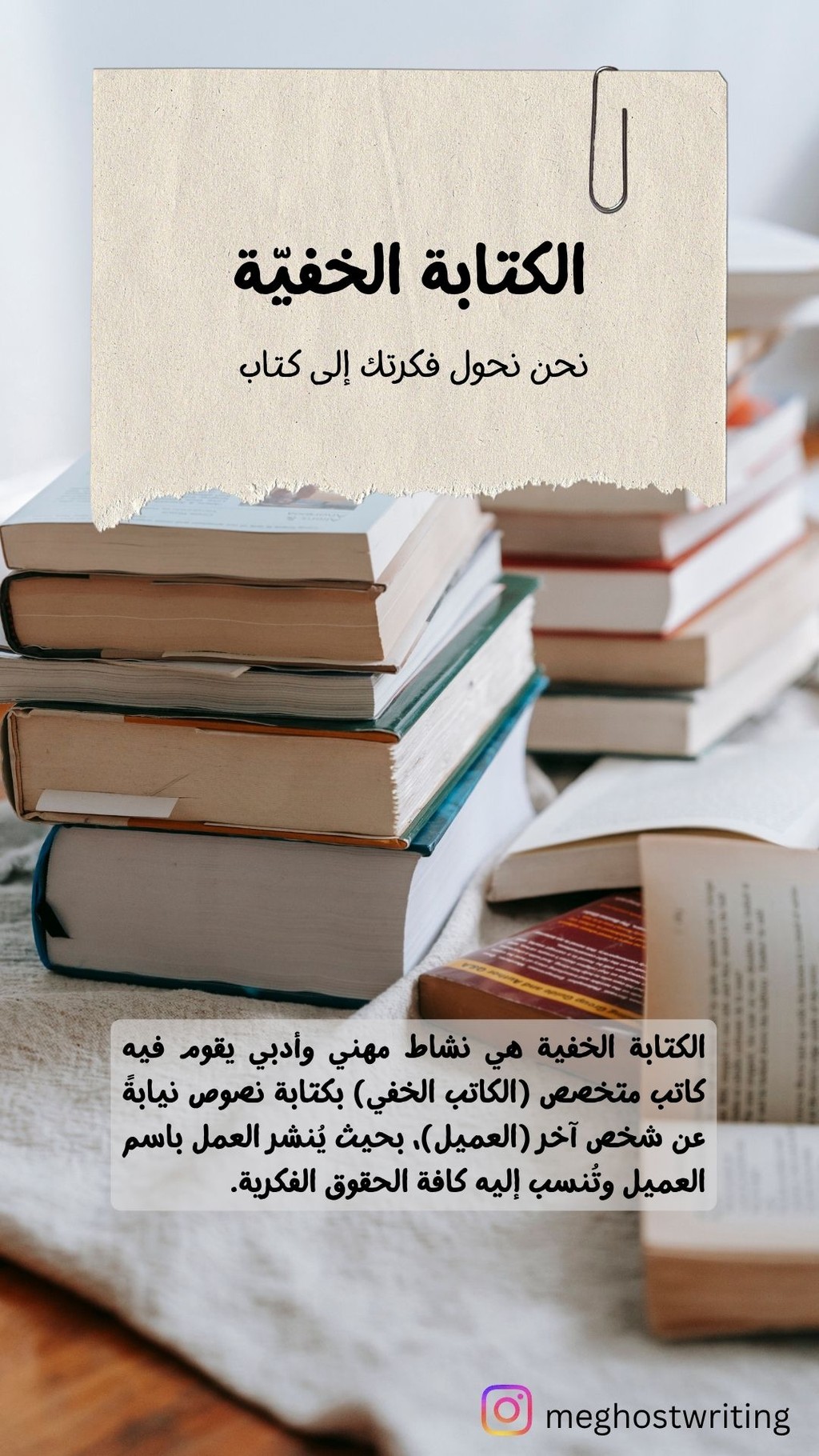 • الكتابة الخفية (Ghostwriting): تأليف كتب ومقالات وقصص تنشر بأسماء العملاء مع ضمان الملكية الفكرية الكاملة لهم.