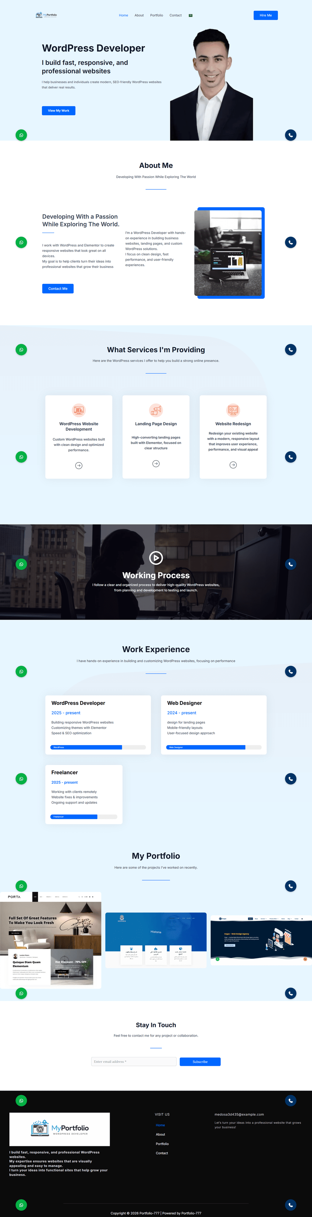 مطوّر ووردبريس متخصص في تصميم وتطوير مواقع احترافية سريعة ومتجاوبة، بخبرة في استخدام Elementor وتحسين الأداء وتجربة المستخدم، مع التركيز على تحويل متطلبات العملاء إلى مواقع عملية تحقق أهدافهم.