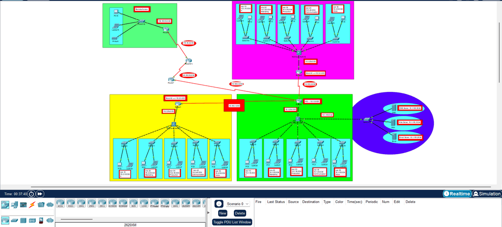 تصميم وبناء وتكوين الشبكات المختلفة (LAN/WAN) باستخدام Packet Tracer