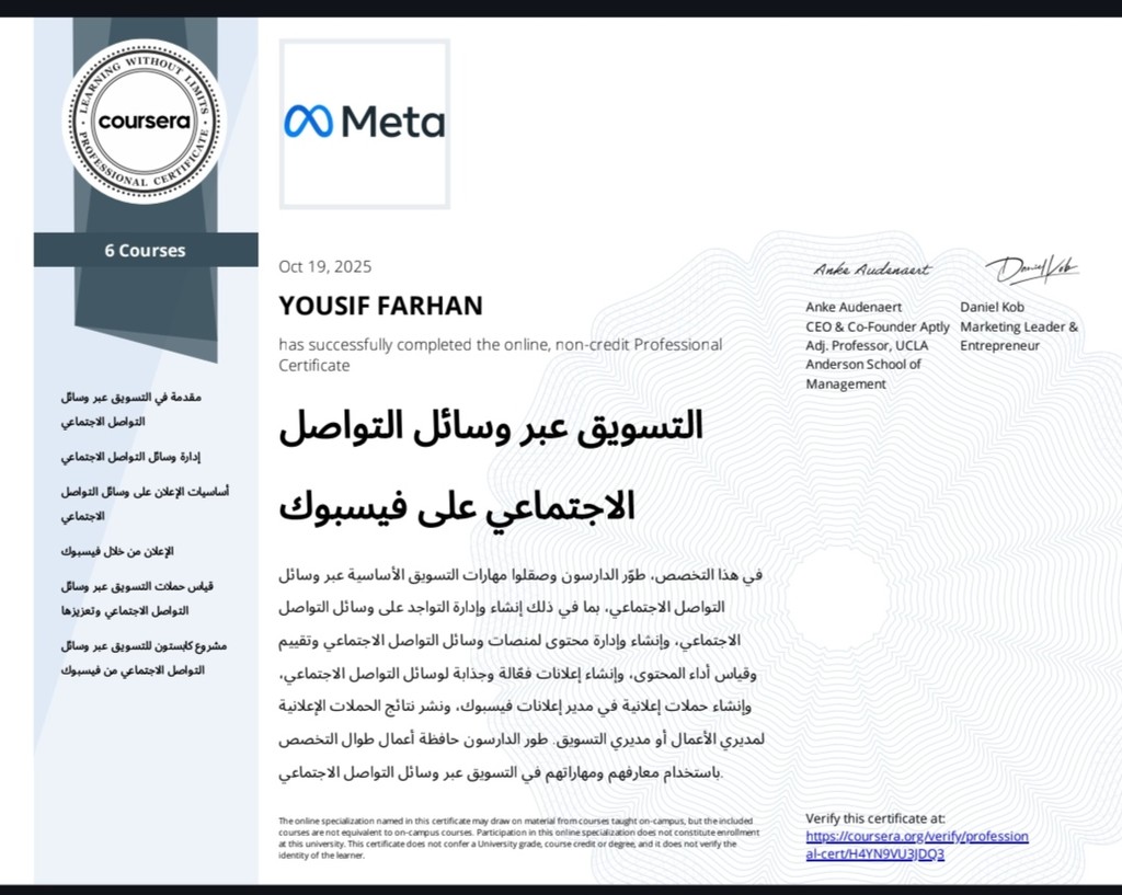 هدفي ليس مجرد زيادة عدد اللايكات، بل زيادة المبيعات والعائد على الاستثمار (ROI) للشركات التي أعمل معها. أمتلك عقلية ريادية وأعمل باحترافية عالية وعن بُعد بكفاءة تامة."