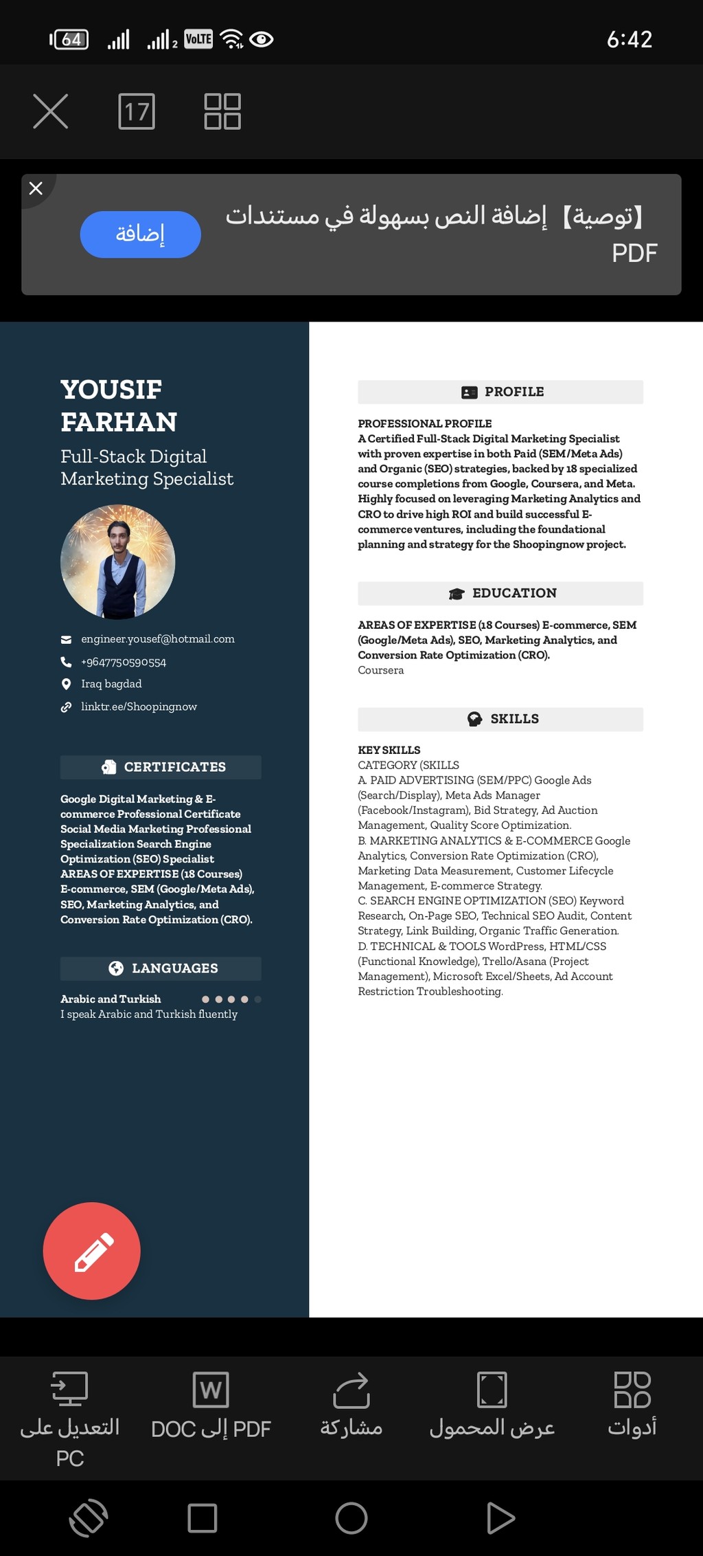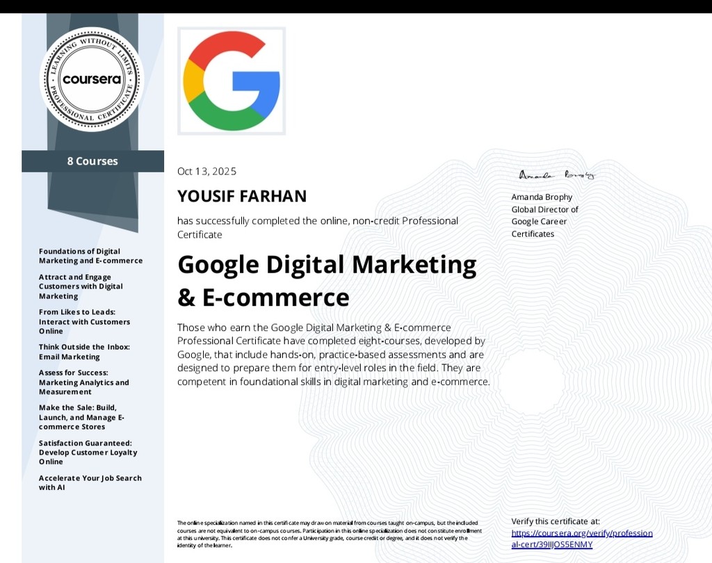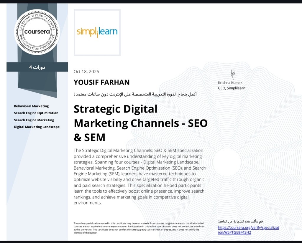 خبير تسويق رقمي ومؤسس وكالة ShoopingNow. متخصص في بناء استراتيجيات النمو، تحسين محركات البحث (SEO)، وإدارة الحملات الإعلانية الموجهة (Google & Meta Ads).