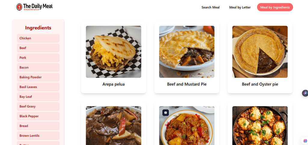 تطوير تطبيق للبحث عن الوجبات باستخدام Vue.js والربط مع واجهات برمجة التطبيقات (APIs).
