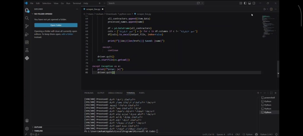 خبير في بناء سكربتات زحف (Scripts) لسحب البيانات من منصات التجارة الإلكترونية والمواقع العقارية. قمت بتنفيذ مشاريع ضخمة لسحب آلاف البيانات وتحليلها لتقديم تقارير مقارنة أسعار ودراسات جدوى تعتمد على بيانات حقيقية من السوق.