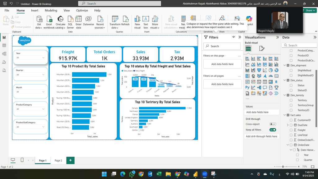 انا عبد الرحمن رجب، محلل بيانات بخبرة عملية في SQL وPython وPower BI وExcel. أساعد الأفراد والشركات على تحويل بياناتهم الخام إلى تقارير ولوحات تفاعلية سهلة الفهم تساعدهم في اتخاذ قرارات أفضل وتحقيق النمو.