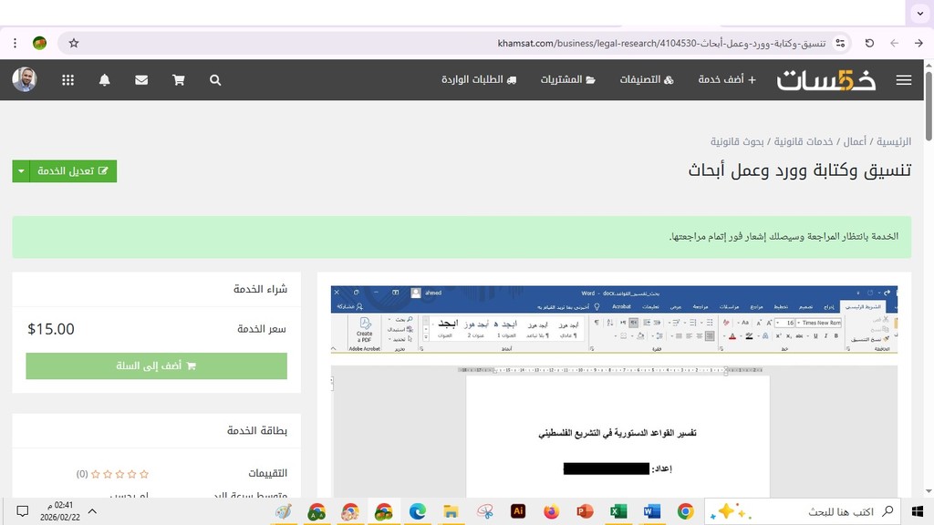 أضمن لك السرعة، الدقة، والأسلوب الاحترافي في تسليم العمل، مع الحرص على رضا العميل وتلبية جميع المتطلبات.