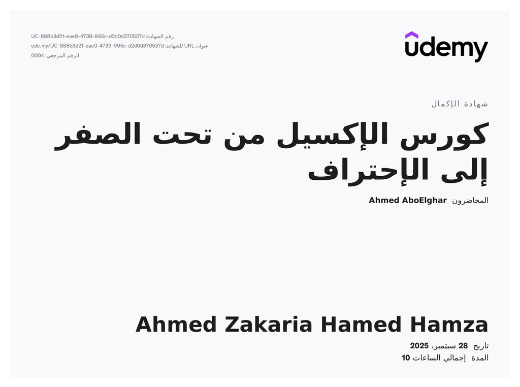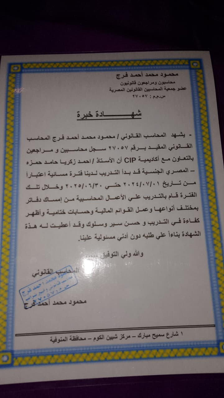 حاصل على دبلومة المحاسبة الشاملة من CIP Training Academy تشمل التدريب العملي على: