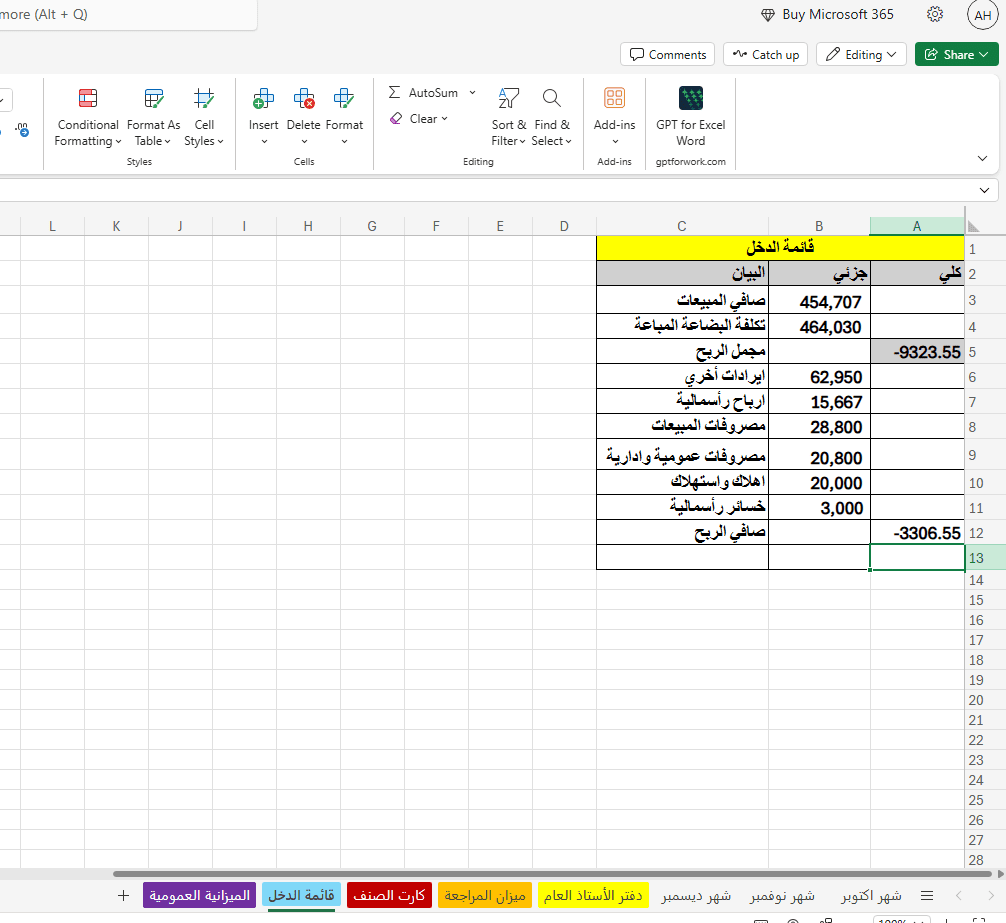 إعداد القوائم المالية (قائمة الدخل – الميزانية – ميزان المراجعة)