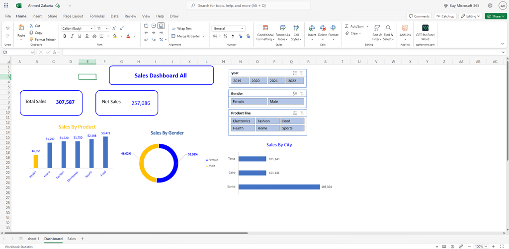 استخدام Excel المتقدم لإنشاء تقارير ولوحات تحكم احترافية (Dashboard, Pivot Table, VLOOKUP, SUMIFS)