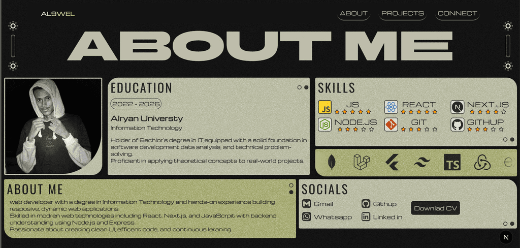أنا مطوّر واجهات أمامية (Frontend Developer) متخصص في بناء تطبيقات ويب حديثة باستخدام React و Next.js. حاصل على شهادة في تقنية المعلومات (IT)، وأعمل على تطوير واجهات تفاعلية وسريعة الأداء مع التركيز على تجربة المستخدم (UI/UX) والتصميم المتجاوب (Responsive Design). أحرص على كتابة كود نظيف ومنظم وقابل للتوسع، وتحويل الأفكار والتصاميم إلى تطبيقات ويب احترافية تعمل بكفاءة على مختلف الأجهزة.