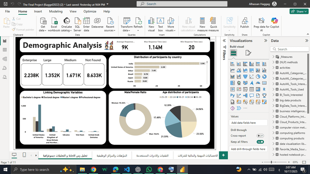 تصميم لوحات Power BI وTableau تفاعلية لعرض النتائج