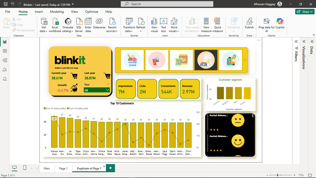بستخدم Power BI وTableau في تحليل البيانات وإنشاء لوحات معلومات تفاعلية (Dashboards) تساعد الشركات في اتخاذ قرارات مبنية على رؤى دقيقة وواضحة.