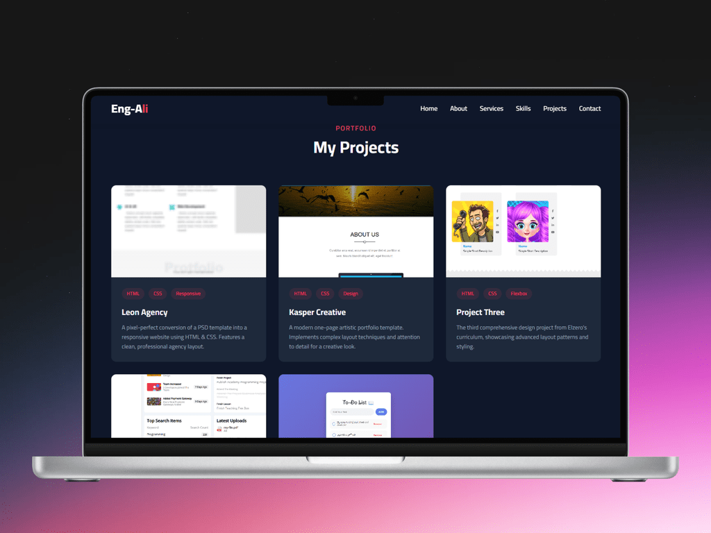 تدريب عملي مكثف: إتمام مسار الواجهات الأمامية (Front-End) من أكاديمية الزيرو، مع التركيز على بناء مواقع تفاعلية، متجاوبة مع كل الشاشات، وتحويل التصاميم إلى أكواد حية.