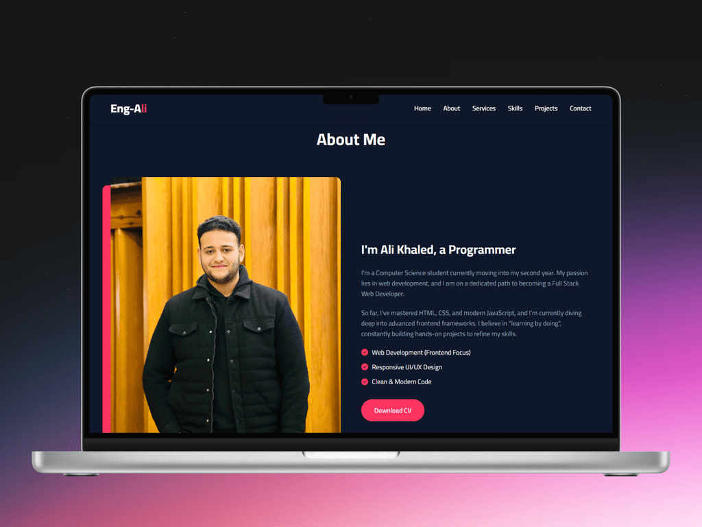 خلفية أكاديمية قوية: دراستي لعلوم الحاسب (في معهد العبور العالي) بتساعدني أكتب كود نظيف (Clean Code) وأركز على سرعة أداء الموقع وحل المشاكل البرمجية بكفاءة.