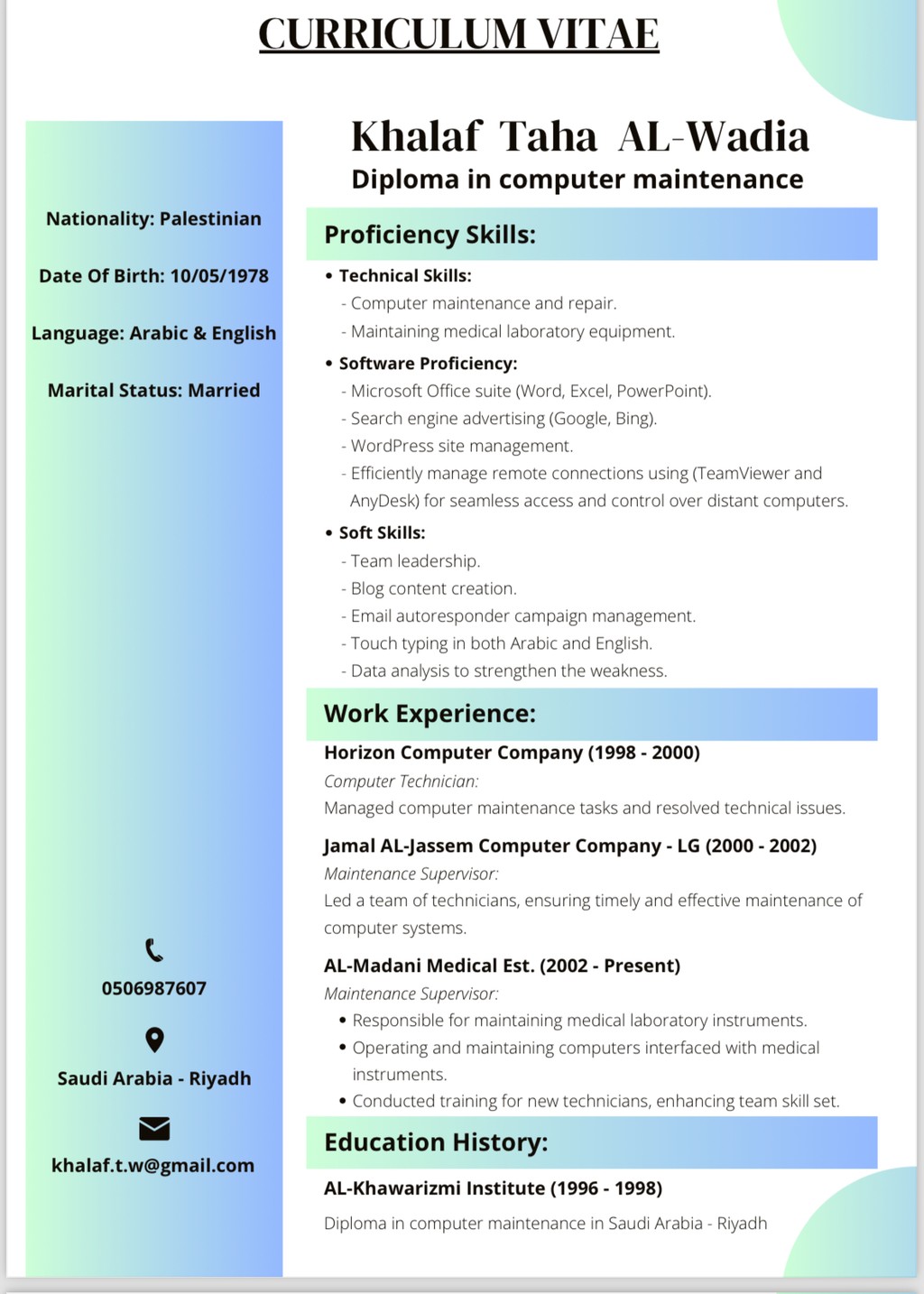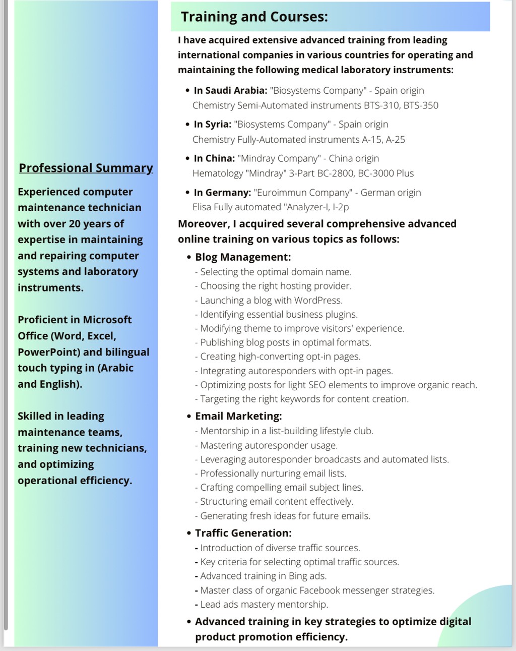 Experienced computer maintenance technician with over 20 years of expertise in maintaining and repairing computer systems and laboratory instruments
