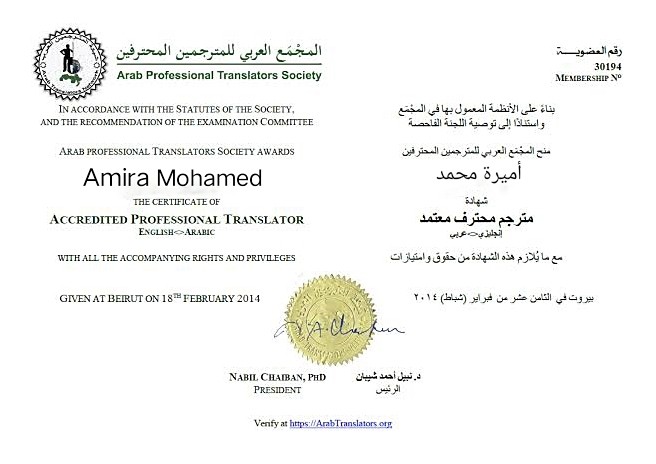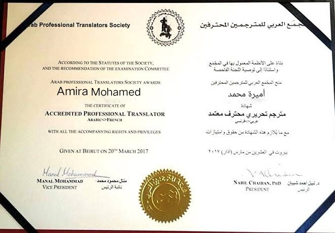 لدي الكثير من الشهادات العالمية والمعتمدة في مجال الترجمة