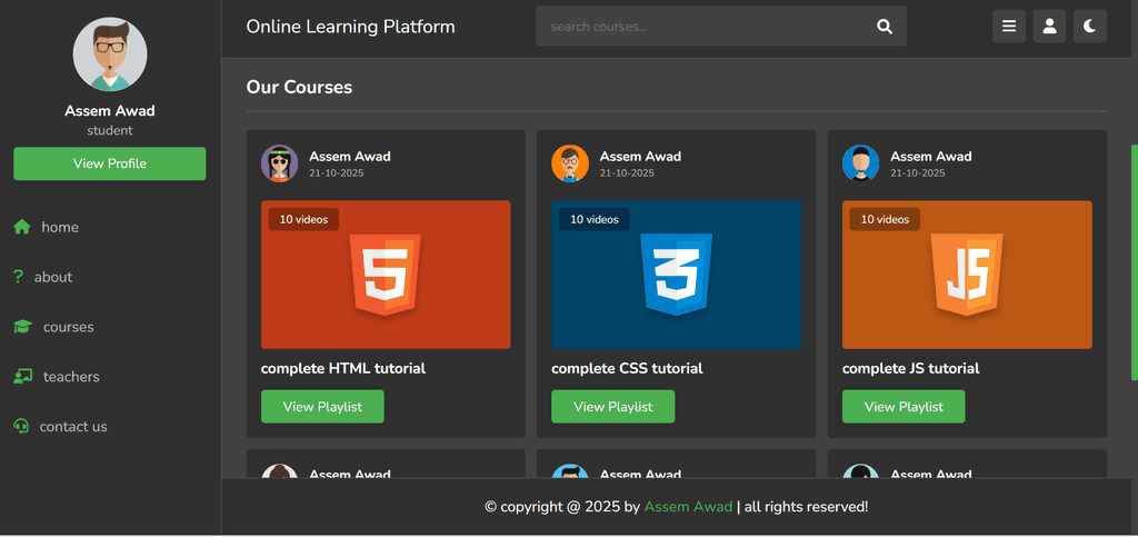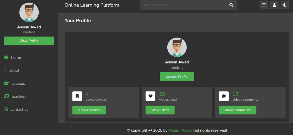 مرحبًا، أنا عاصم عوض ، مطور ويب متخصص في بناء المتاجر الإلكترونية والمواقع الديناميكية باستخدام HTML، CSS، JavaScript، Bootstrap، PHP وقواعد بيانات SQL. أمتلك خبرة في تصميم واجهات متجاوبة وسهلة الاستخدام تضمن تجربة مستخدم سلسة وجذابة على جميع الأجهزة. أعمل على تقديم حلول متكاملة – من تصميم اللوحة الأمامية إلى لوحة التحكم لإدارة المحتوى والعملاء والطلبات – مع التركيز على الأداء، الأمان، وسهولة الإدارة.