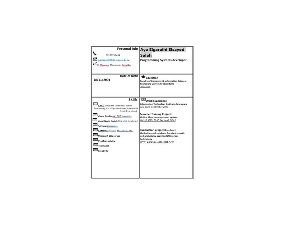 خريجة حاسبات ومعلومات قسم تكنولوجيا المعلومات جامعه المنصورة مصر بتقدير عام امتياز ،