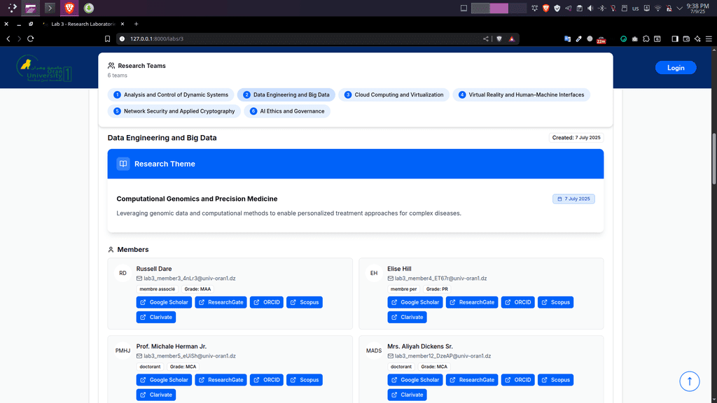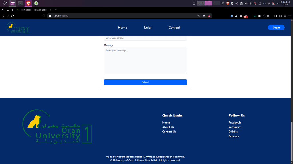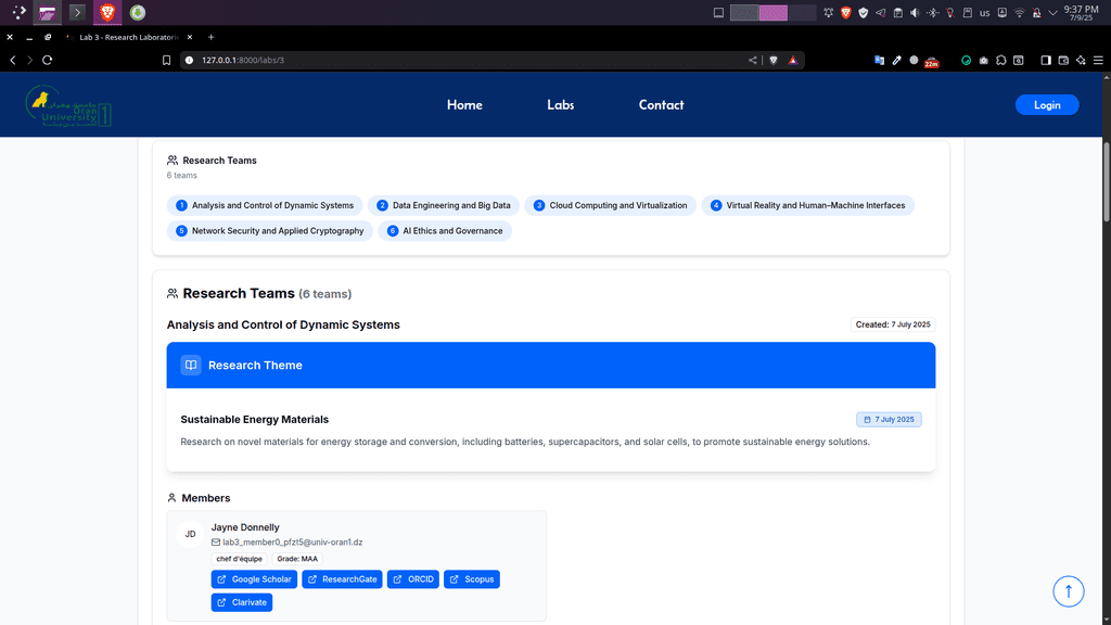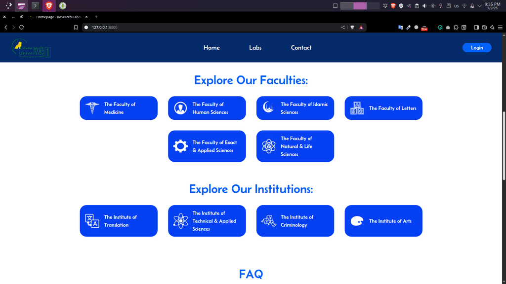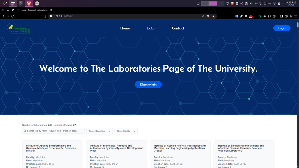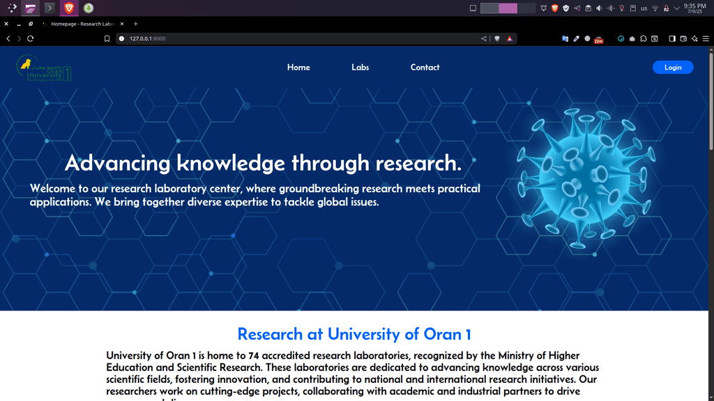المشروع مازال قيد التطوير والذي هو عبارة عن موقع إلكتروني رسمي لمخابر البحث التابعة للجامعة