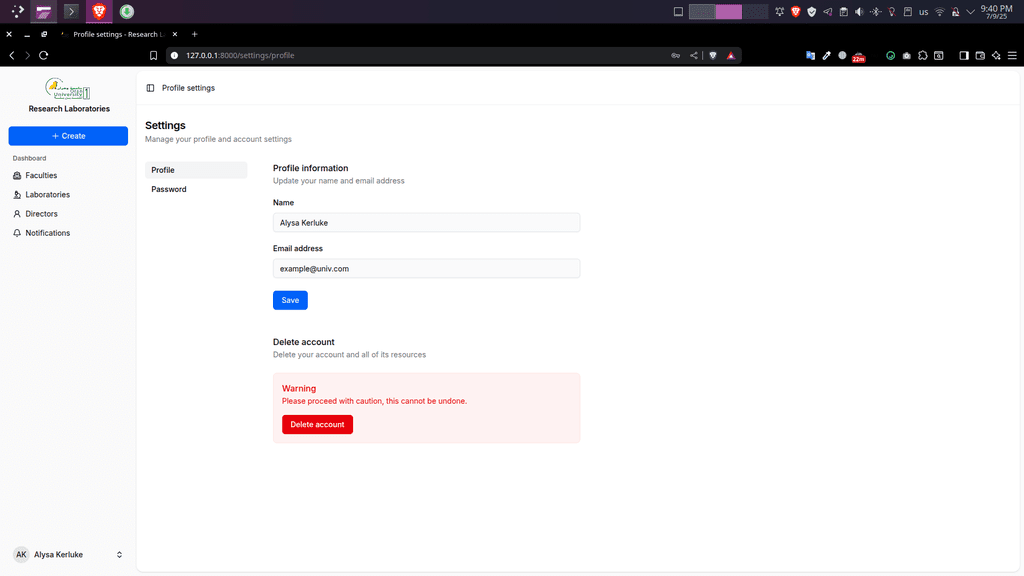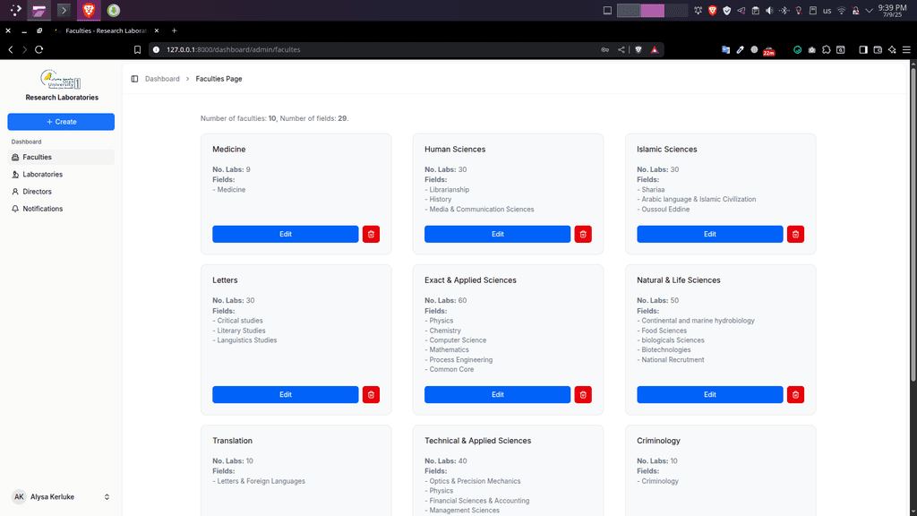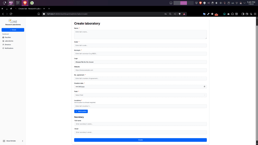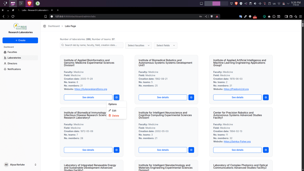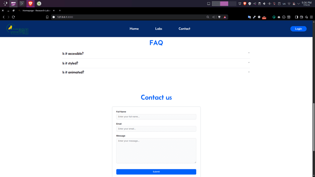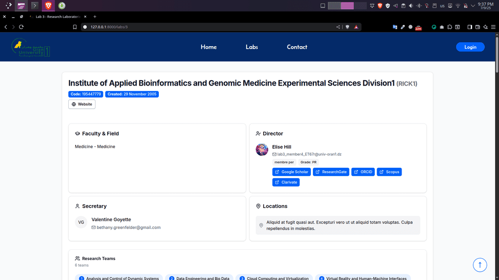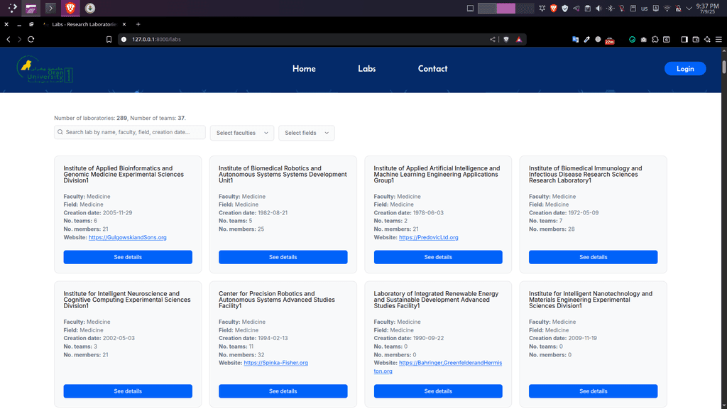 المشروع مازال قيد التطوير والذي هو عبارة عن موقع إلكتروني رسمي لمخابر البحث التابعة للجامعة