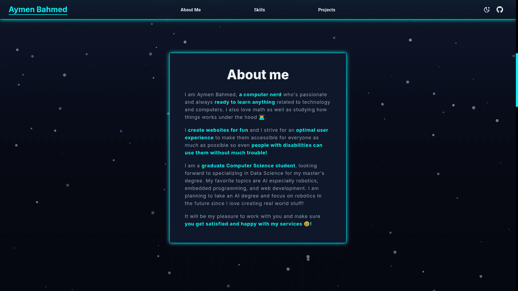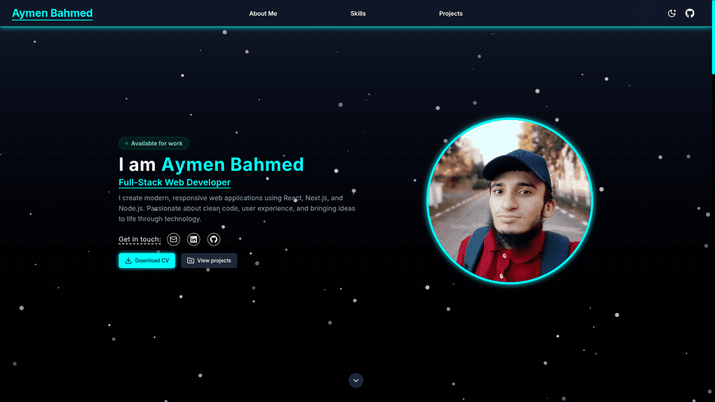 أنا أيمن من الجزائر، خريج علوم الحاسوب بشهادة البكالوريوس ومهندس برمجيات متخصص في تطوير تطبيقات الويب مع خبرة أكثر من 3 سنوات باستعمال عدة تقنيات وأدوات والتي هي: