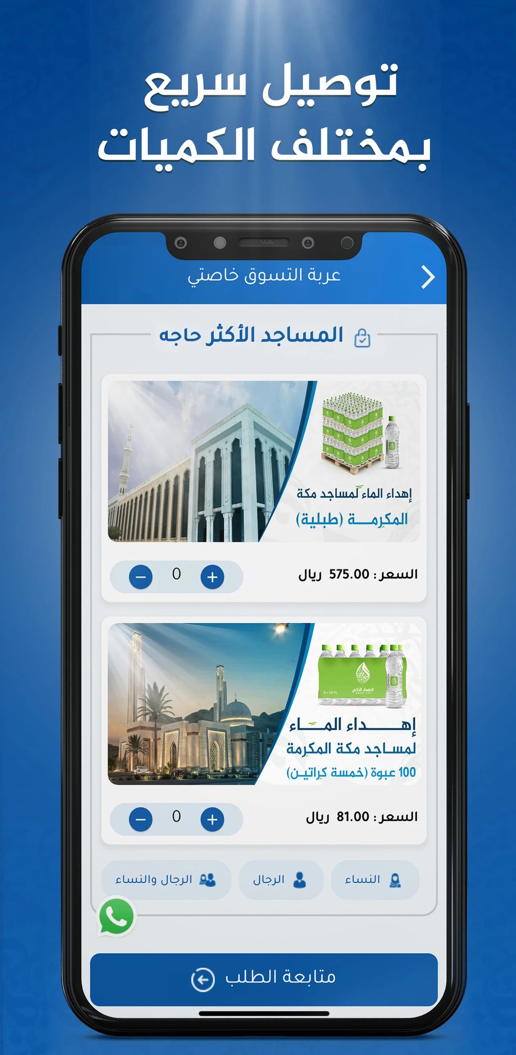 اختيار مكان المسجد لارسال الهديه (عبوة مياه)