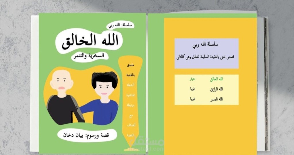 وسلسلة قصص للأطفال بعنوان الله ربي، صدر منها قصة بعنوان الله الخالق، قمت برسم القصه وكتباتها.