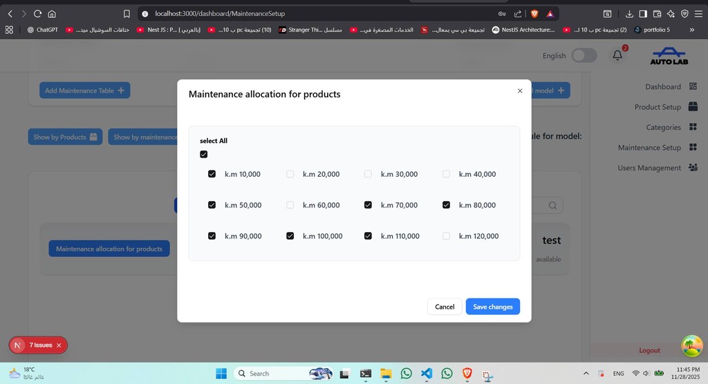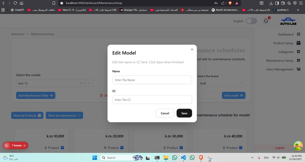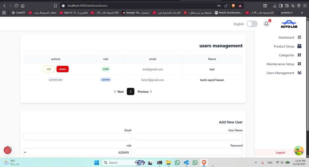تطبيق إدارة صالونات يشمل لوحات تحكم متقدمة (Dashboards) لإدارة الخدمات، الموظفين، الحجوزات، والتقارير، ويتم تطويره حاليًا للسوق السعودي.