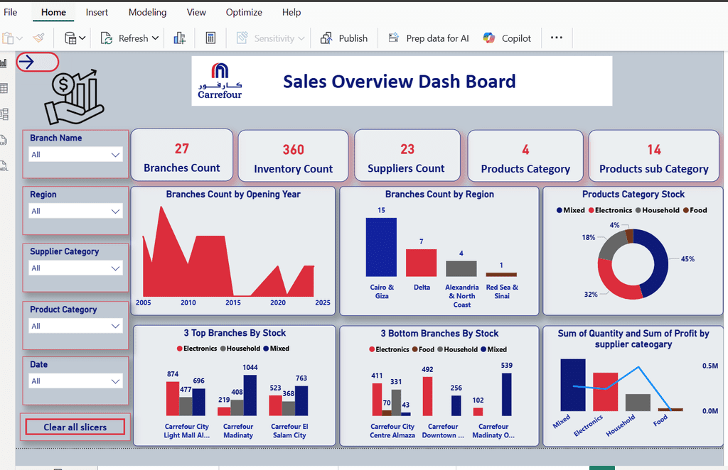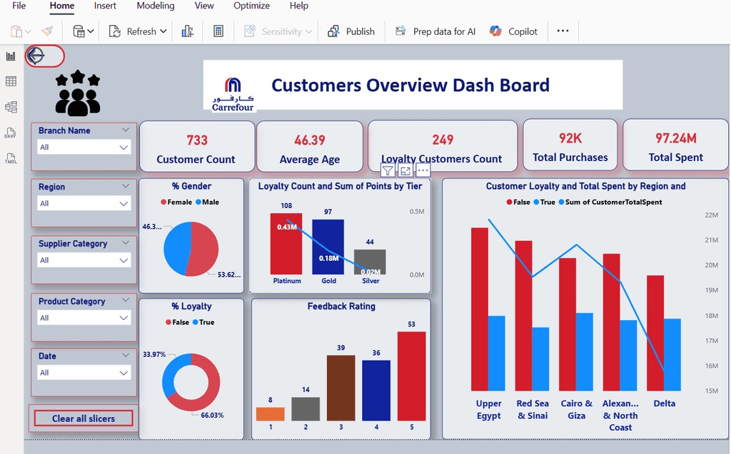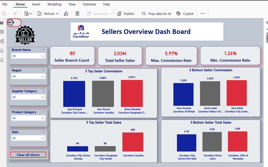 تصميم لوحات تحكم تفاعلية على Power BI توضح مؤشرات الأداء (KPIs).