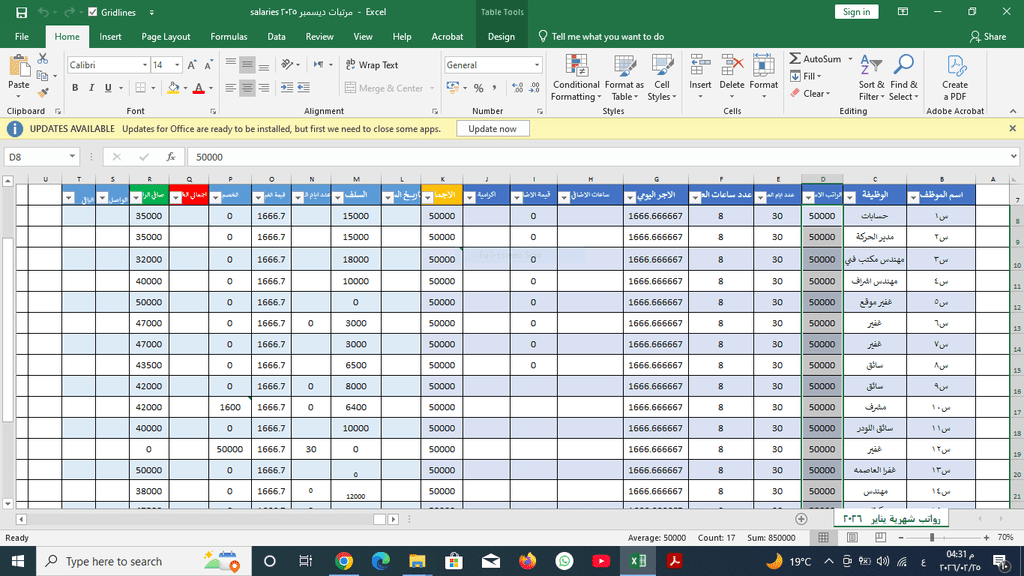إعداد وصرف المرتبات الأسبوعية والشهرية للموظفين والعمال.