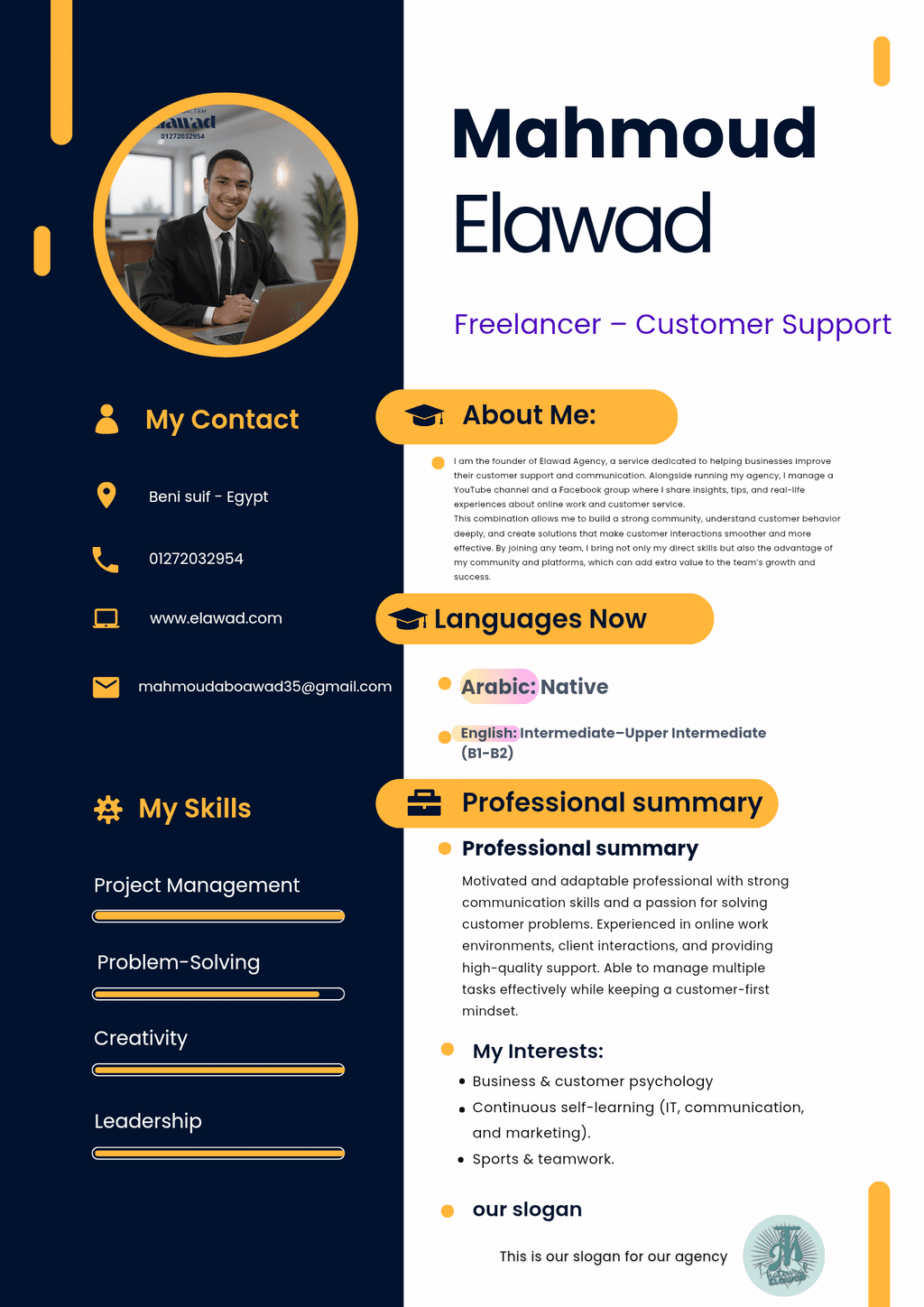 عندي تجربة في إغلاق صفقات صغيرة أونلاين (خدمات مستقلة/فريلانس)، وقدرت أتعامل مع اعتراضات العملاء وأحوّل التواصل لصفقة ناجحة