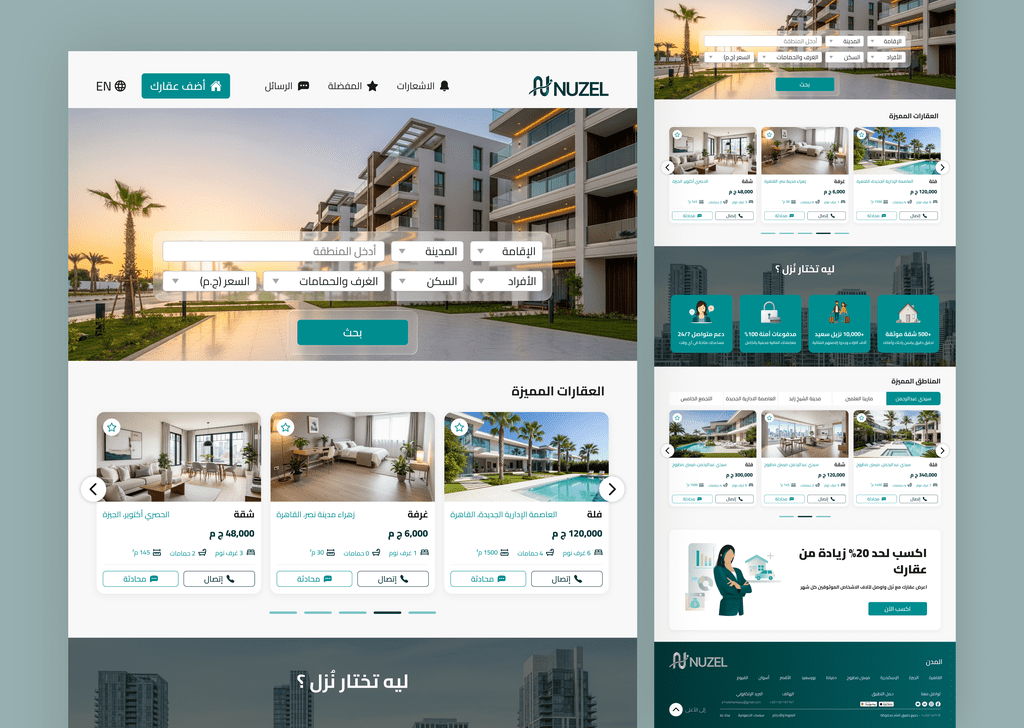 • Nuzel App: تطبيق لحجز وتأجير العقارات أونلاين بطريقة آمنة وشفافة.