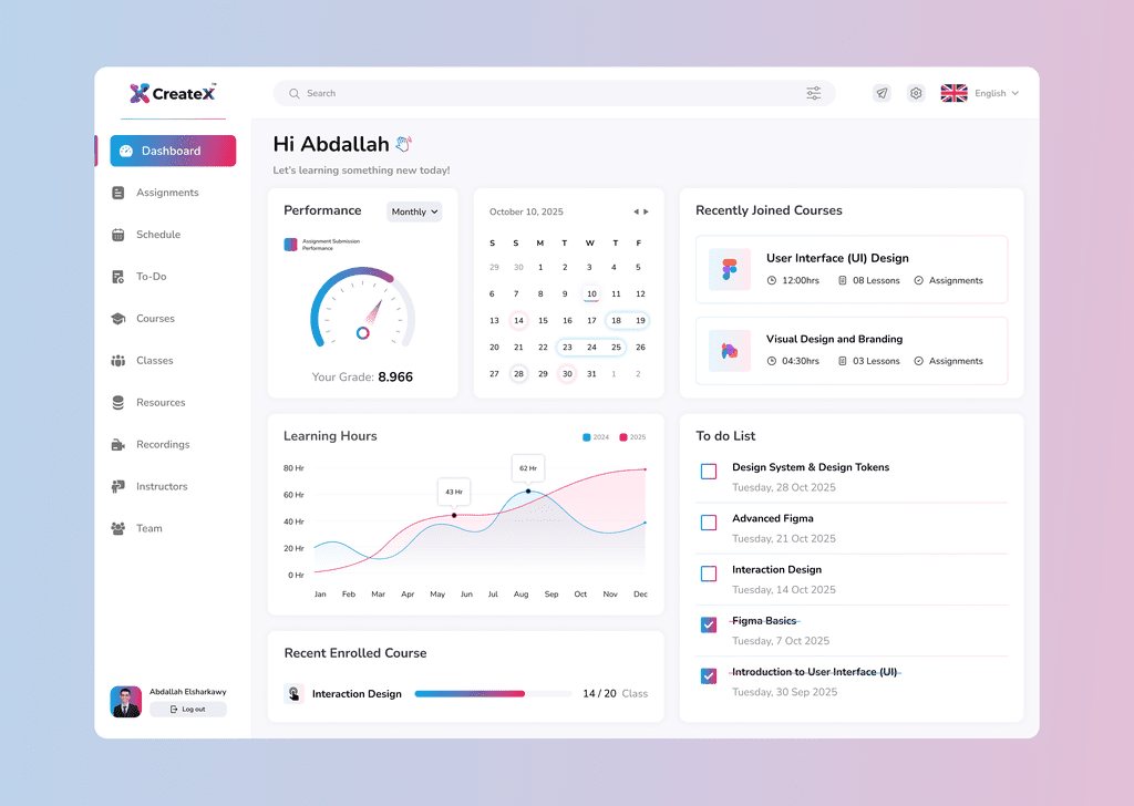 برنامج مكثف يركز على تصميم واجهات وتجربة المستخدم، شمل دراسة البحث المستخدم، رسم الشخصيات، خرائط الرحلة، تصميم النماذج الأولية (Prototypes)، والاختبار العملي للتجارب. شاركت في مشاريع تطبيقية عملية طوّرت من خلالها مهاراتي في Figma وأدوات التصميم الحديثة.