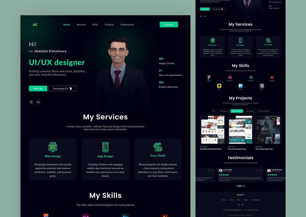 • مهتم بالتفاصيل ومبدع في الأفكار واعمل بكفاءة عالية، وأسعى دائمًا لتقديم تصاميم واضحة تمنح المستخدم أفضل تجربة.