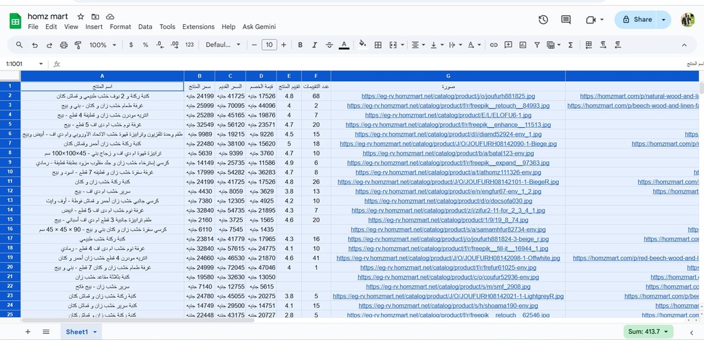 سحب بيانات من المواقع والمتاجر (صور – أسعار – وصف – تقييمات – منتجات – إعلانات) وتنظيمها في Excel أو Google Sheets بشكل نظيف ومنسق.