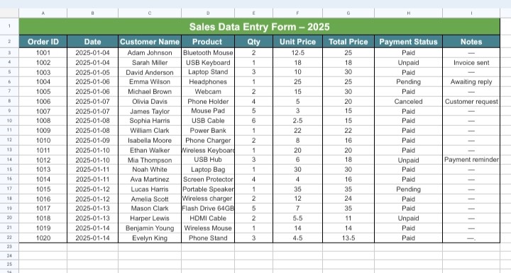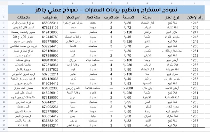 إدخال البيانات في جداول Excel أو Google Sheets بشكل منظم، مرتب، ومتوافق مع التعليمات الخاصة بعدد الخانات ونوع البيانات المطلوبة