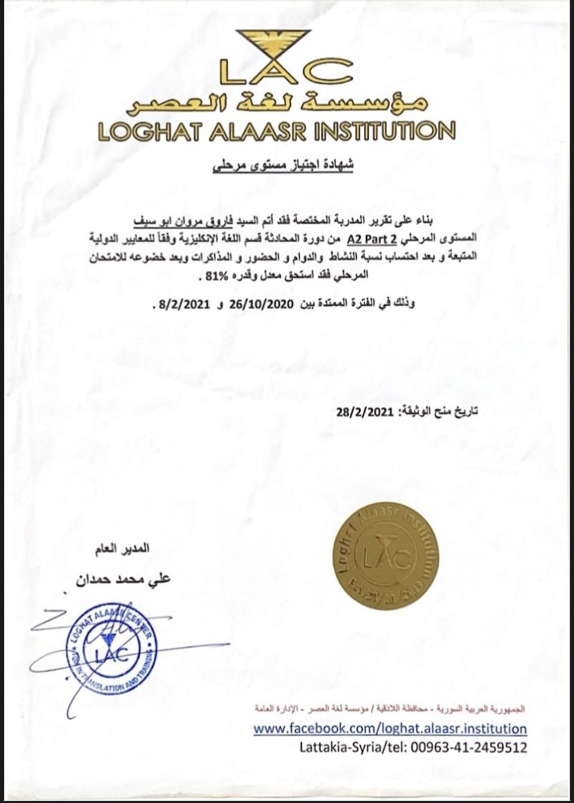 كلية الإدارة السياحية و الفندقية في الجمهورية العربية السورية-اللاذقية ٢٠٢٢-٢٠٢٧